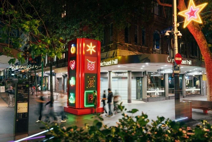 Xmas Columns, Queen st, Auckland. Artist, Angus Muir.