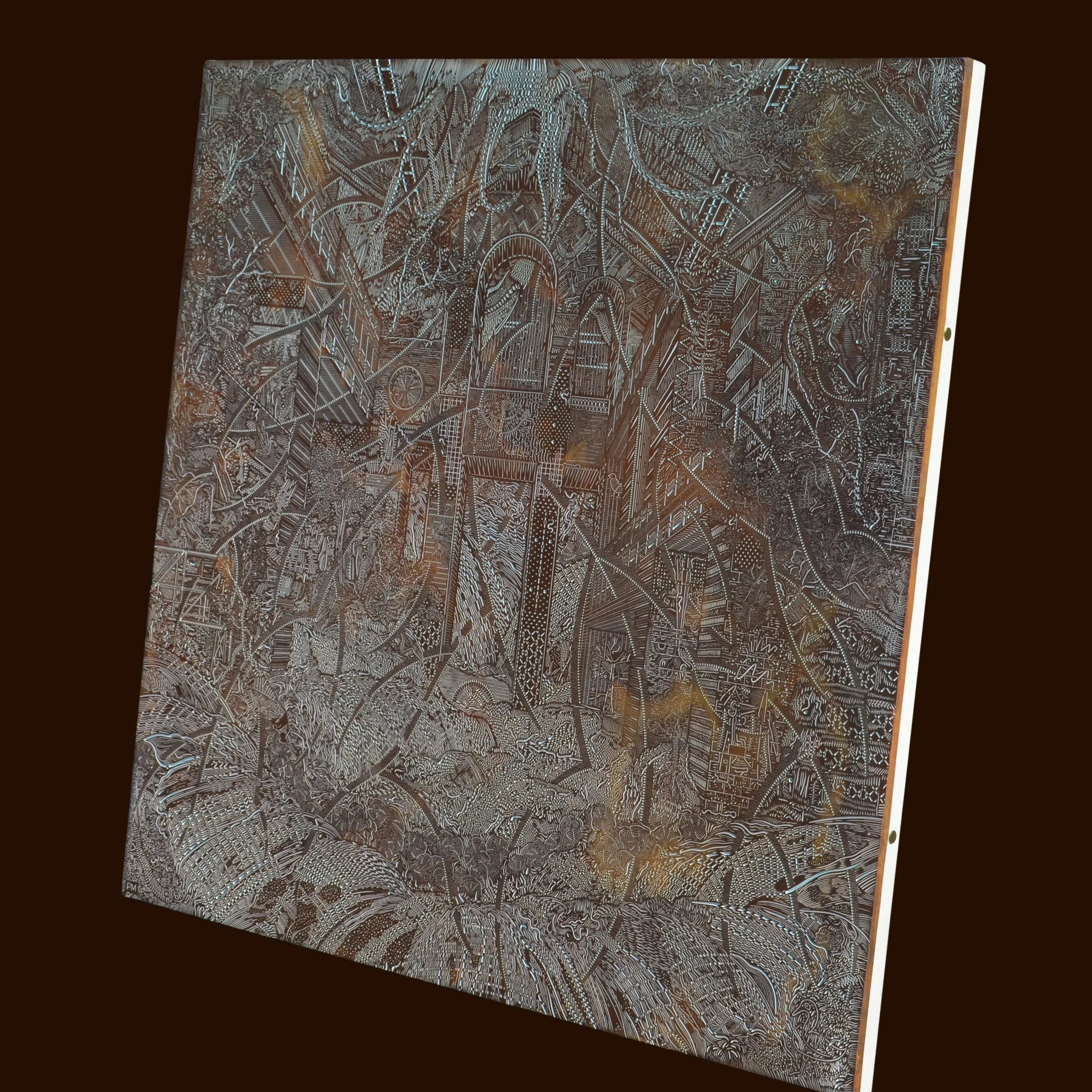 paper mill acrylic and rusted iron paint on canvas, 122x122cm, 2024